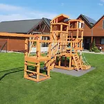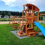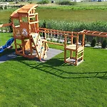 Es gibt eine Küchenzeile mit Annehmlichkeiten wie einer Mikrowelle, einem Wasserkocher und Küchenutensilien. Die Gäste können sich dank einem Wasserpark, einem Spielplatz und den Gärten richtig entspannen. Oder einen Aktivurlaub mit Reiten, Badminton und Radfahren gestalten.